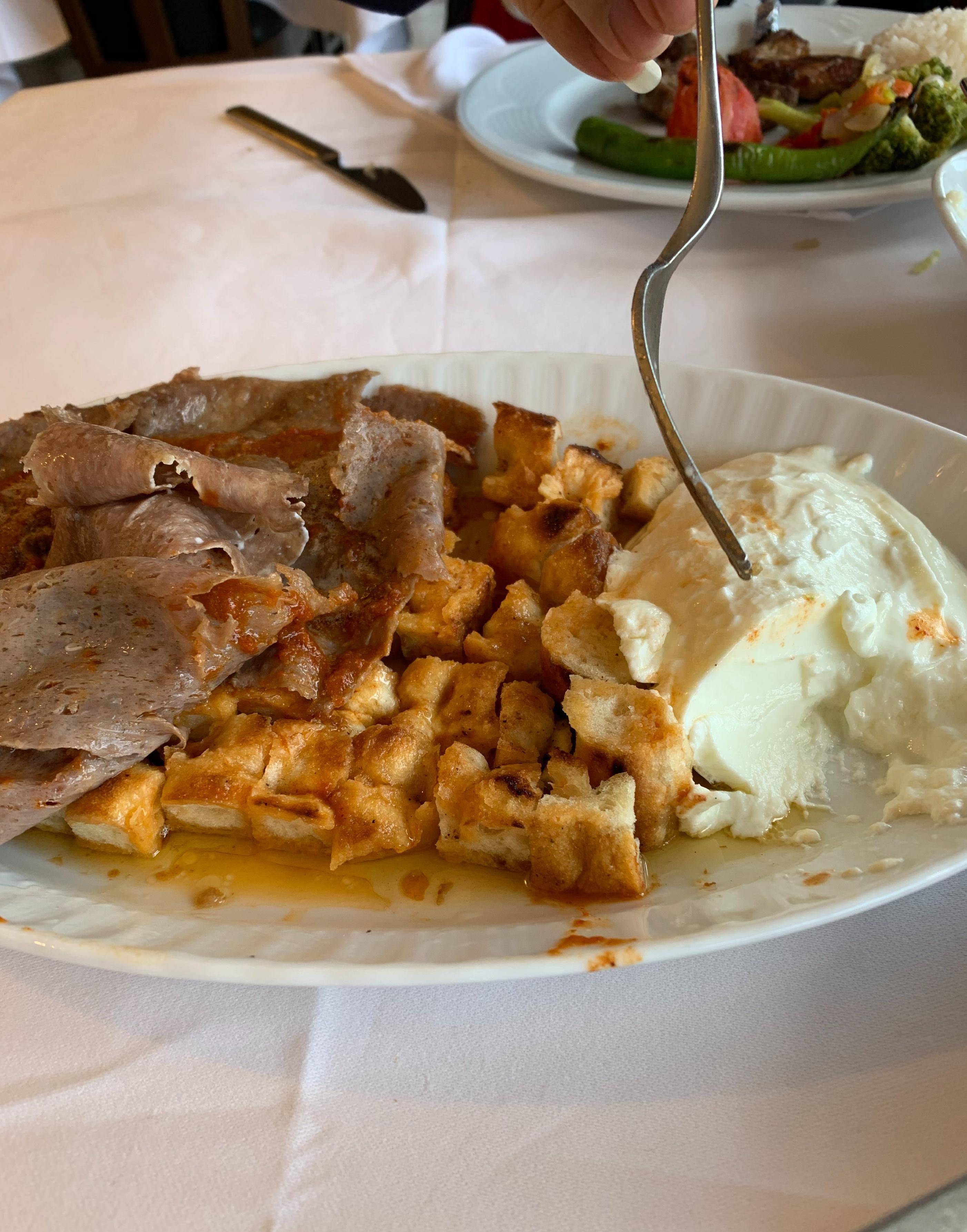 安卡拉购物中心有一家土耳其的著名餐厅,经营正宗的土耳其菜,我们不知道点什么好吃的,就让服务员安排。今天的菜都是硬菜,吃的溜溜饱。