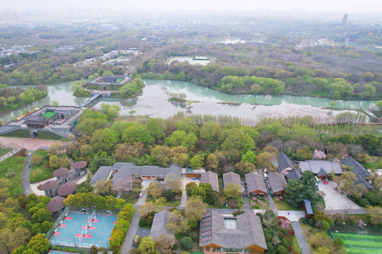 宋夹城体育休闲公园的春天,满眼绿意,环境清幽,位于扬州
