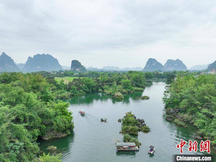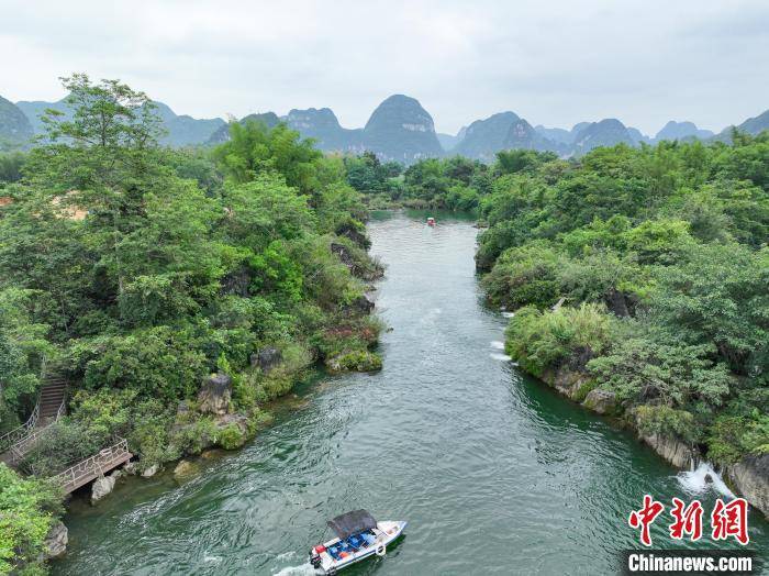 5月23日,游客在广西崇左市大新县雷平镇安平仙河景区乘船游玩。该景区内江河纵横,绿岛村庄相依,沿途奇峰夹峙,古树成荫,构成了一幅幅美不胜收的山水画。