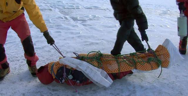 队员们带着两名登山者的遗体,一路从顶峰顺势而下,最终将逝者送至安全地带。
