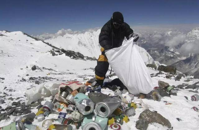 每年,登山者都会在攀登过程中产出氧气罐、塑料制品等各类垃圾。长此以往,昔日洁净的圣女峰逐渐被垃圾覆盖,珠峰的生态环境遭到严重破坏。