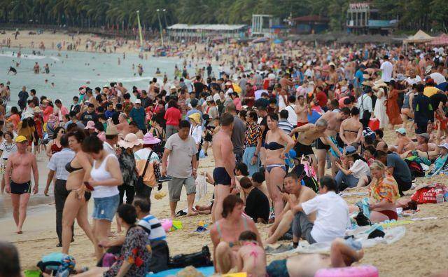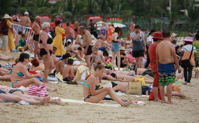 2019年12月1日,海南三亚大东海迎来冬季旅游旺季,游客扎堆海滩晒日光浴。