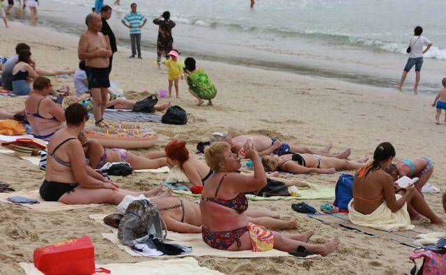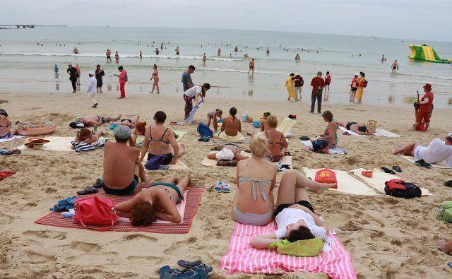 俄罗斯大妈挤爆冬季三亚,大东海沙滩晒日光浴,身材果然不是传说