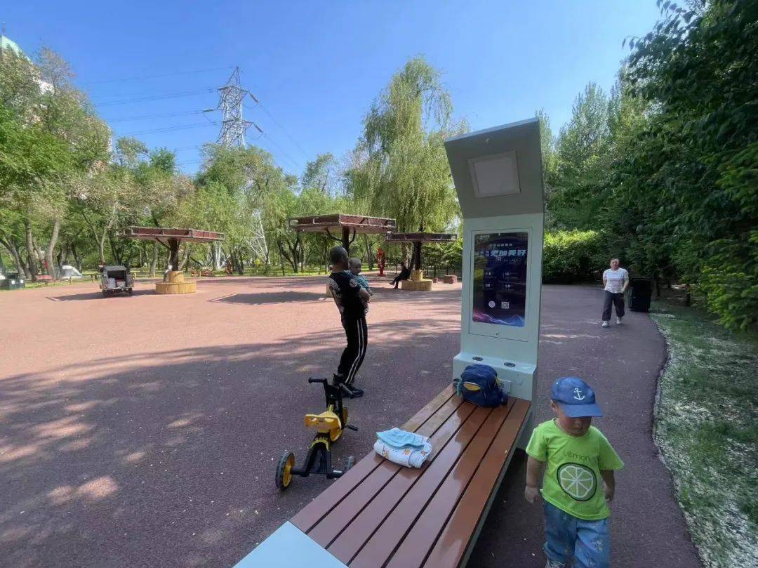 儿童娱乐区:完善适幼化设施新建1处儿童娱乐区315平方米,沙池180平方米,配备攀爬网1处、秋千4组、太阳能充电座椅等设施。