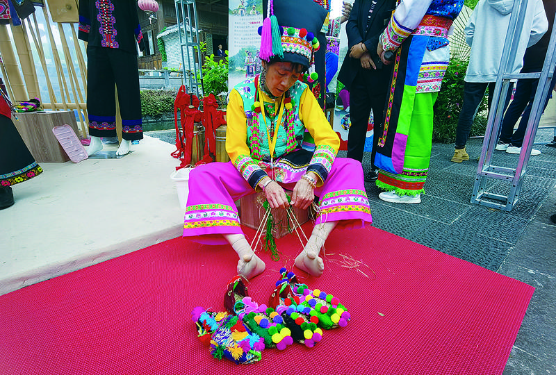 施甸木老元乡布朗族山歌演唱、打草鞋技艺展示、布朗族服饰展示……在施甸县非遗活态展区,一项项非遗项目非常“吸睛”。