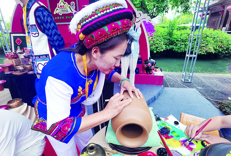 在这场极具特色的非遗盛宴中,金鸡彩陶、布朗族服饰、腾冲甲马等项目惊艳亮相,生动多元地诠释着中华优秀传统文化重要组成部分的云南民族文化的独特魅力,展现着蕴含其中特有的精神价值、思维方式、想象力和文化意识,吸引了来自五湖四海的游客驻足欣赏、体验。