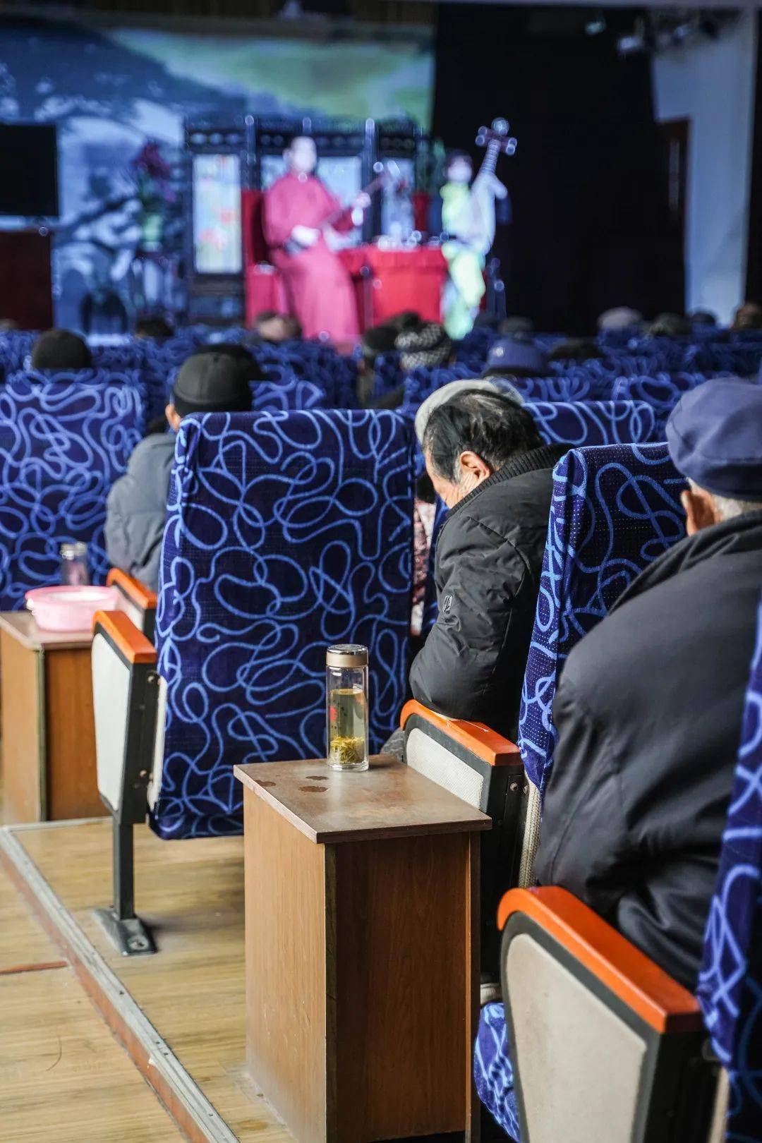有人跟随着唱词转换着自己的情绪,脸上情不自禁流露出喜怒哀怨的表情;有人微阖双眼,细细地体味剧情中的悲欢离合、爱恨情仇,神思已随着角色游离于现实之外;有人听累了,抿一口茶,转身与身边的人轻声交谈一两句,又回过头继续聆听······