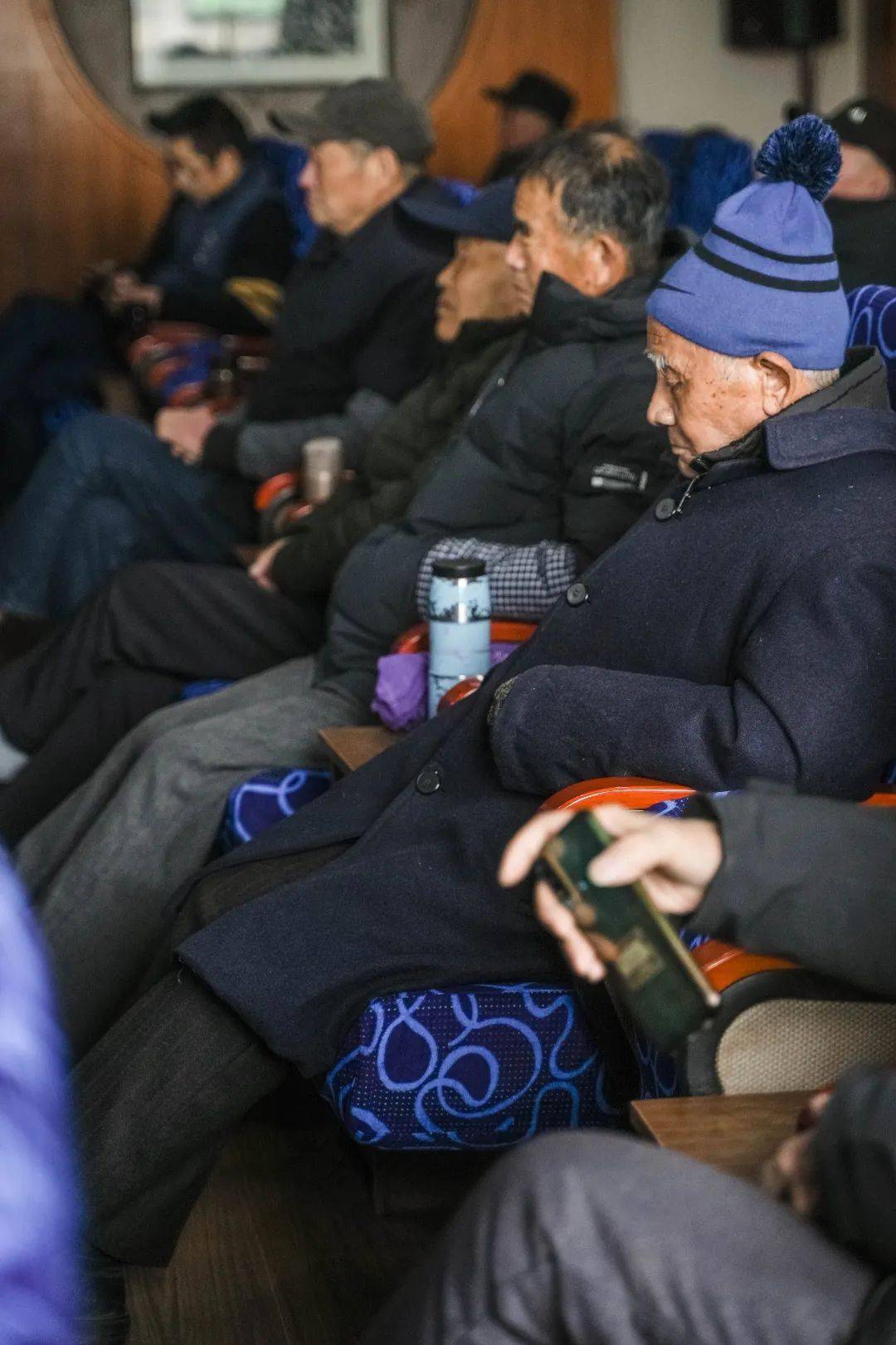 他们或高声交谈着前一天听到的、看到的新鲜事,唠唠家长里短;或是两人低头喁喁私语,那种不足为外人道的默契与亲密彰显了独有的亲近关系;还有人独自端坐,默不作声,听着周围的人高谈阔论,逢到有趣处,脸上便浮出一丝会心的笑意。