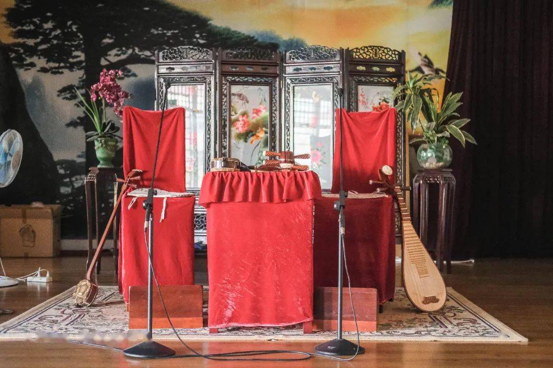 二楼书场内设有近200个座位,正前方的舞台上放置了屏风,按照节目的要求,舞台上会呈现不同的布置。