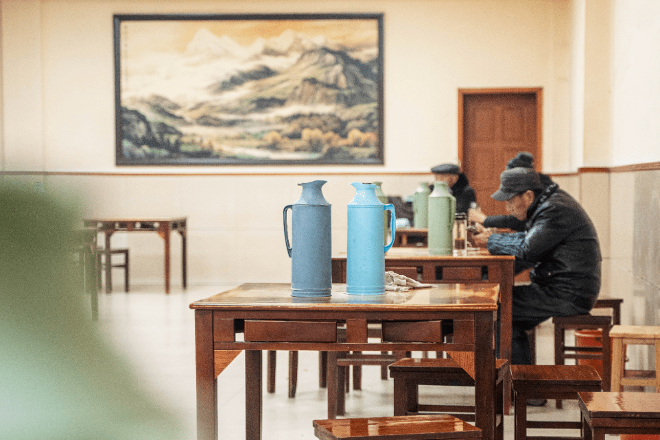 水壶里的水还在冒着星火的炭炉上烧着,老高靠在旁边等了一会,水沸了,接过灌满沸水的热水瓶,老高便朝常坐的角落位置走去。
