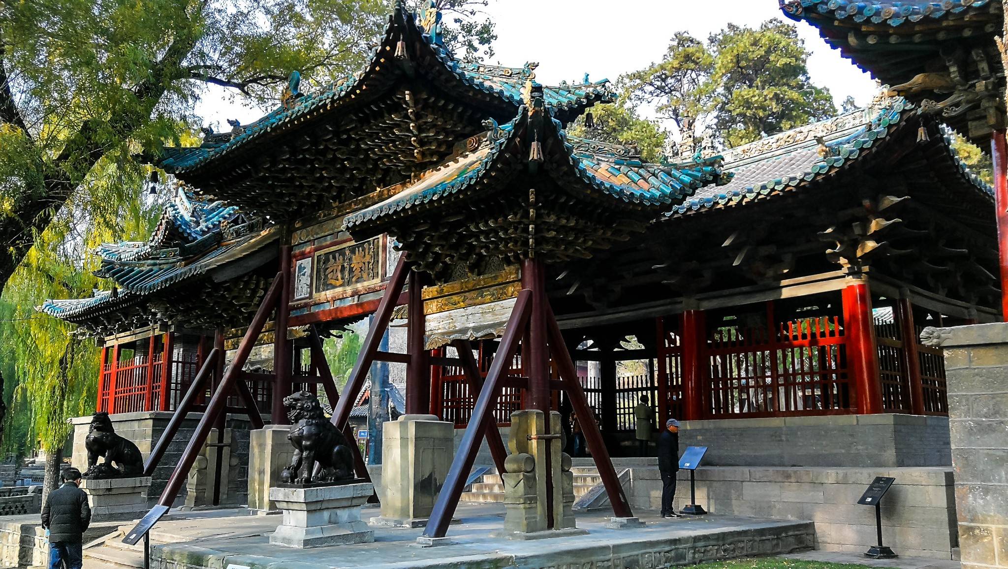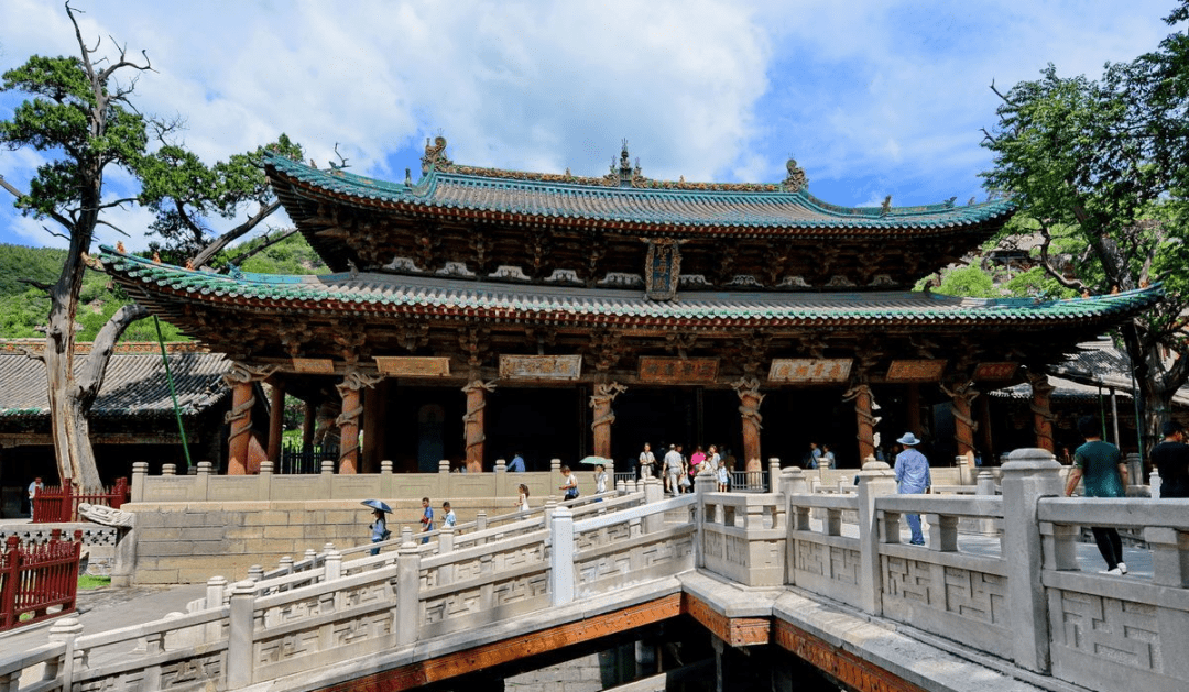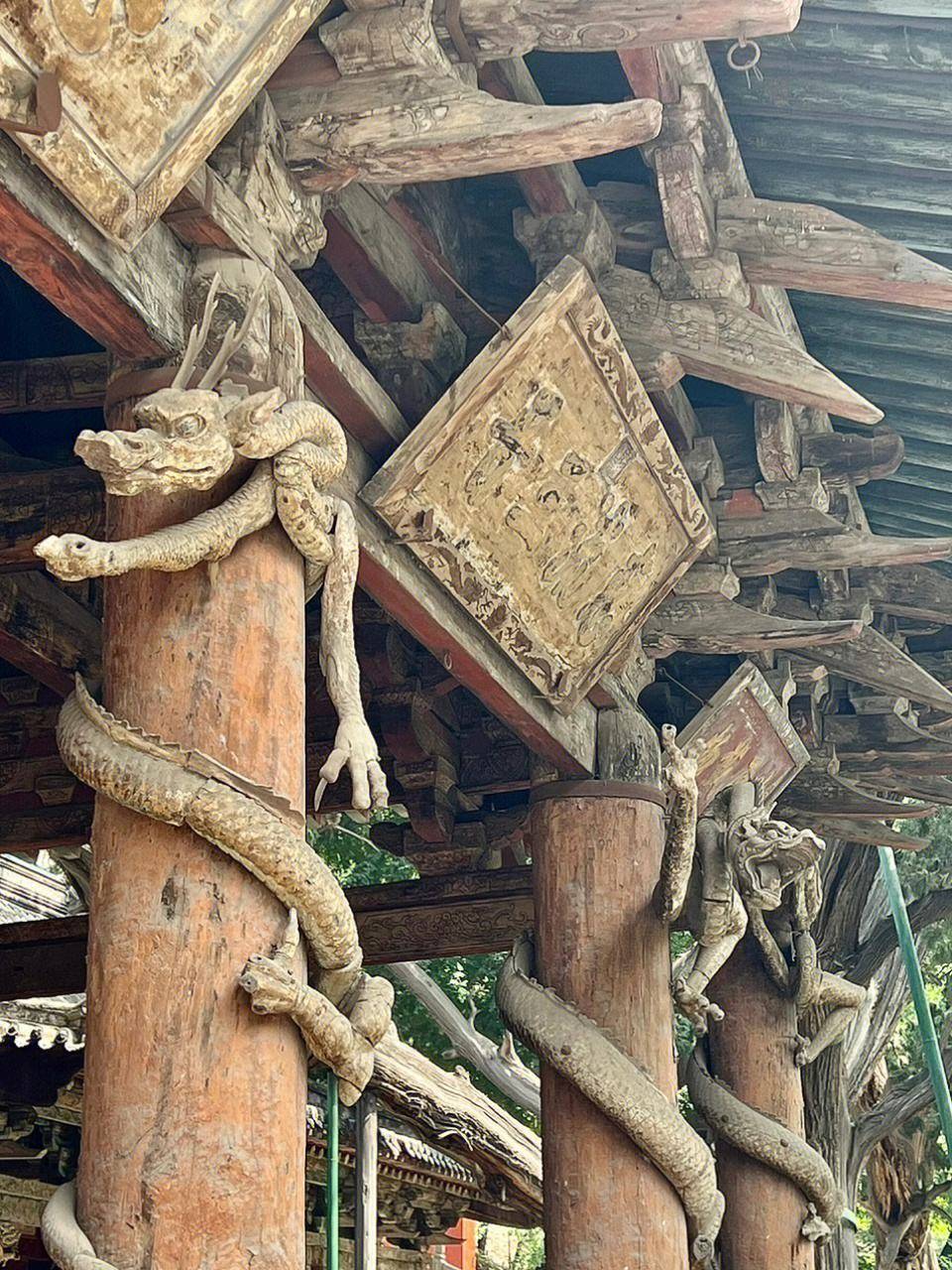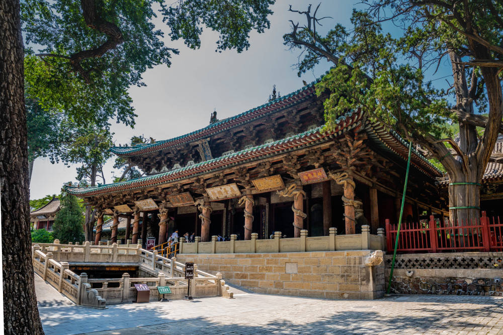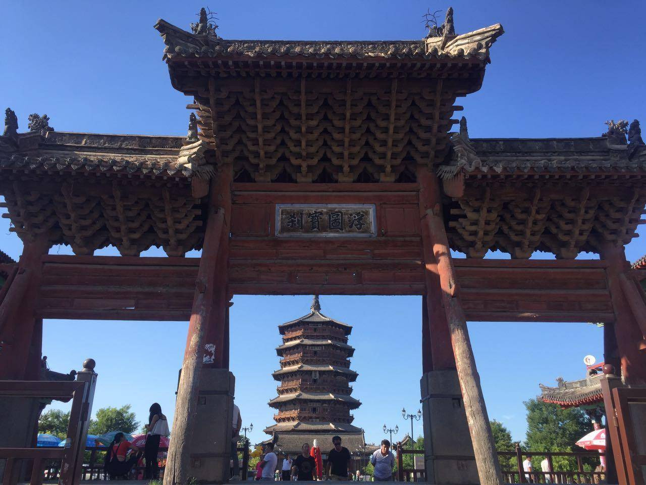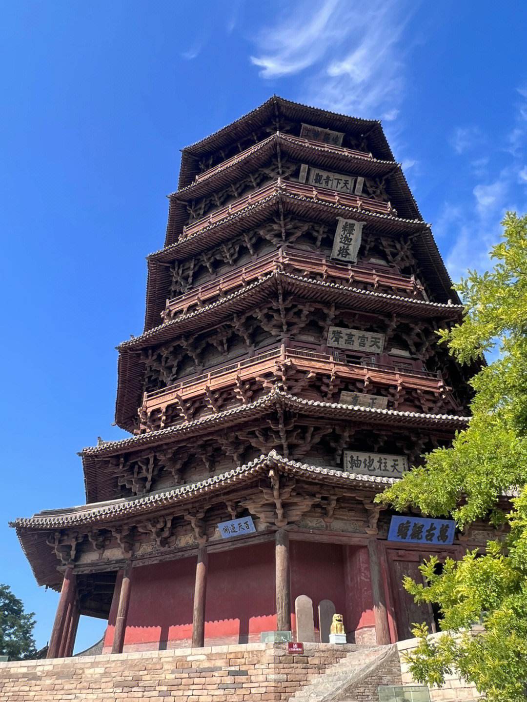 鸟瞰木塔,每层都建造有一个八边形中空结构层,呈现出八角形的姿态,塔身高约六十余米,与八角攒尖式塔顶完美融合,每层均设有木隔扇,方便凭栏远眺。置身其中,放眼望去,恒岳如屏,桑干似带,景色尽收眼底。