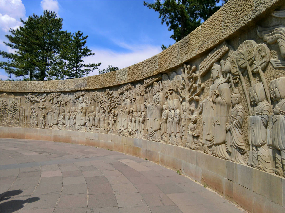 昙曜广场——佛光大道——礼佛浮雕墙——灵岩寺(山堂水殿)——写经院——石窟群——周总理纪念室——云冈北魏皮影、木偶馆——云冈陈列馆——演艺中心——食货街。
