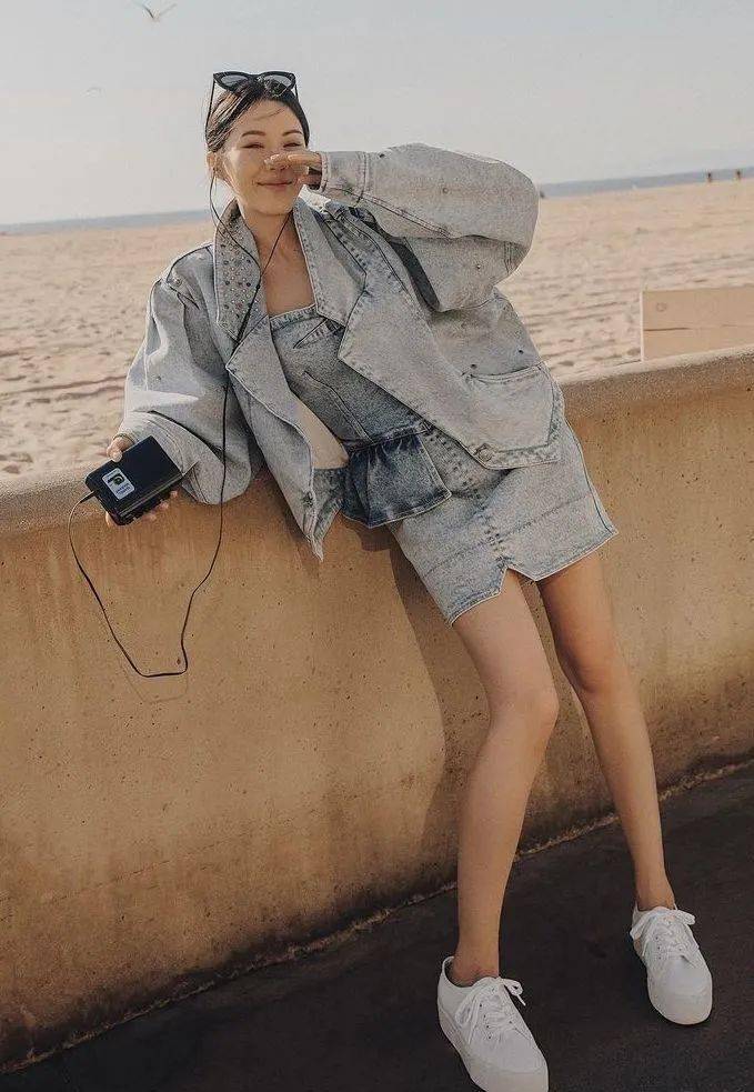 还可以尝试九分牛仔外套搭配高腰半身裙,俏皮可爱。也可以选择有图案或者印花的牛仔外套,让整场比赛更加个性时尚。