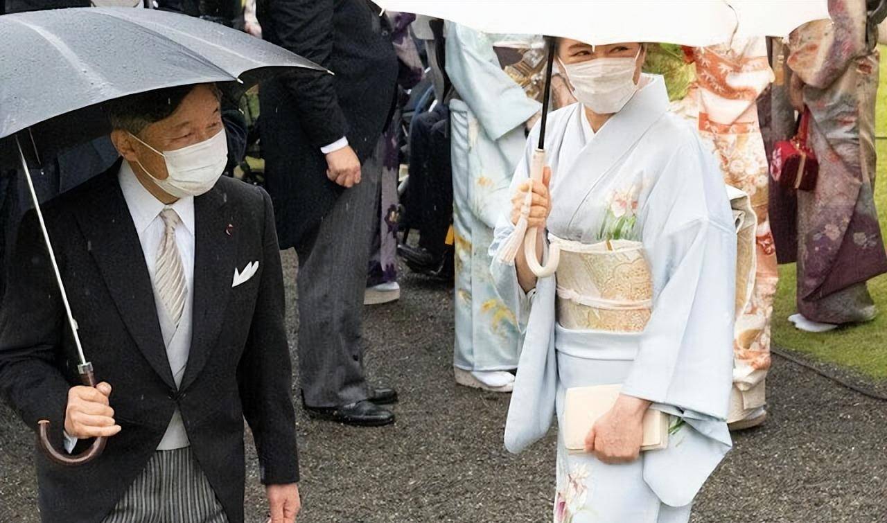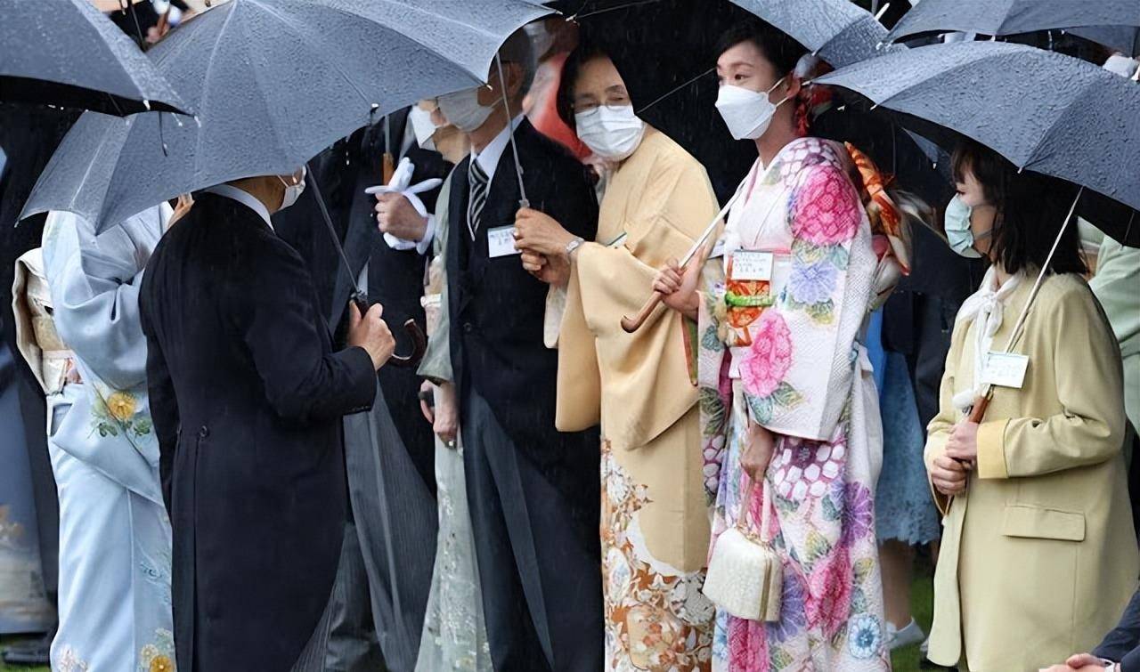 那天下着雨,雅子女王撑着伞是那么优雅。雅子女王的蓝色刺绣和服能够凸显她的优雅,而纪子妃的粉色和服则大获成功。