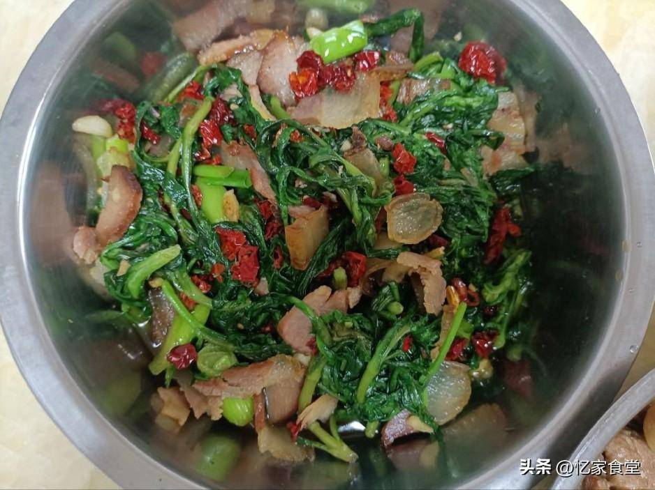 腊肉炒茼蒿里面的腊肉也是阿姨自己做的,切成薄片,肥肉部分呈透明色,看着就很诱,瘦肉部分瘦而不柴,咸香可口,加了大量的辣椒提味,味道更香浓,不咸不淡但是层次感丰富,还有茼蒿的香味不仅让开胃而且能解腻,这样的腊肉吃起来一点也不油腻,非常下饭。
