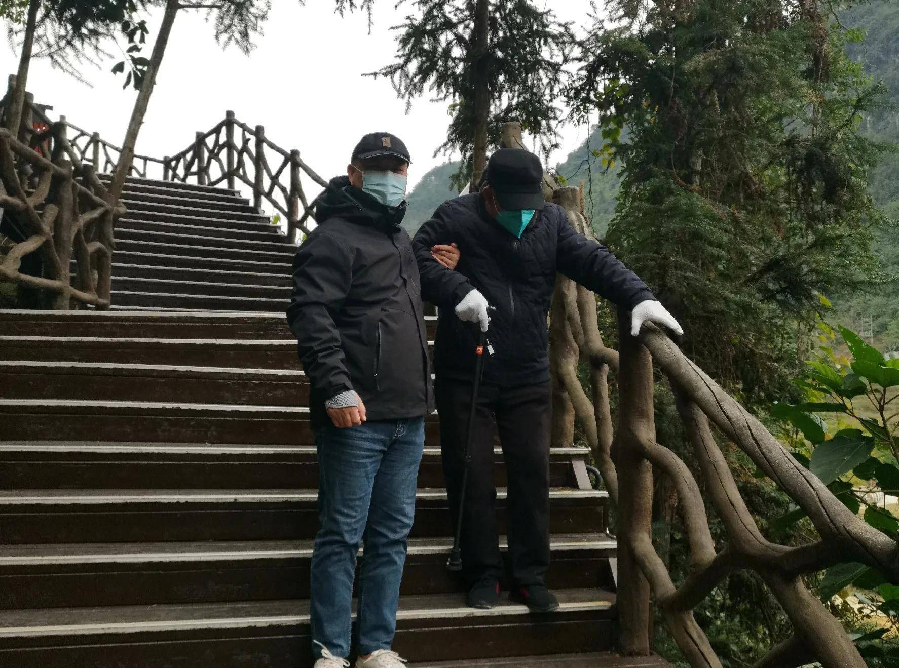 父亲阳后双腿走路还没力,需搀扶着慢慢走。