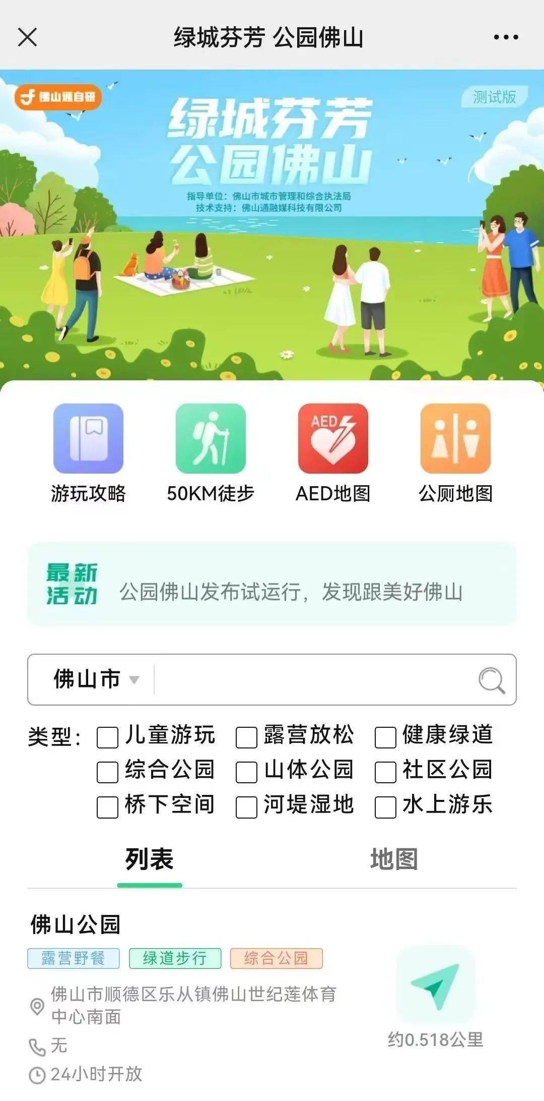 “绿城芬芳 公园佛山”平台(测试版)上线啦!通过“一张图”告诉大家佛山有哪些值得打卡的公园。平台动态收录了全市公园的信息,市民可快速、便捷地查找到最合适的公园去处。