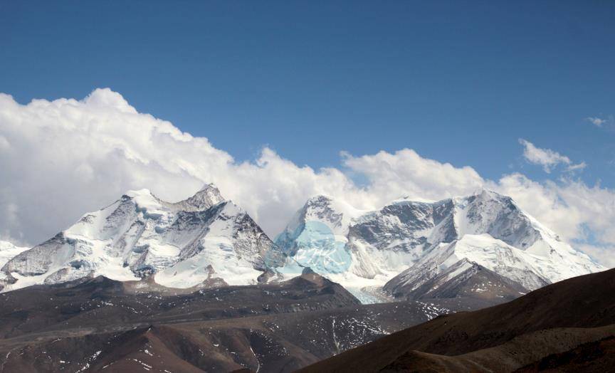 其中库拉岗日,仔细观察就会发现其略显平坦的顶上由三座山峰组成,最西边的是主峰,海拔7538米,往东依次是7418米的二峰和7381米的三峰。库拉岗日东边的卡热疆则显得峭拔,峰顶一圈雪山围合,其中也有三座7000米以上的雪峰。