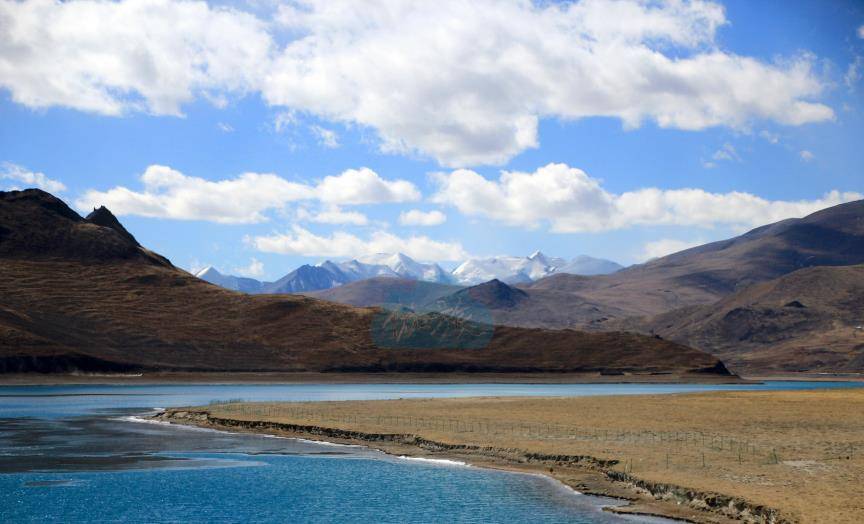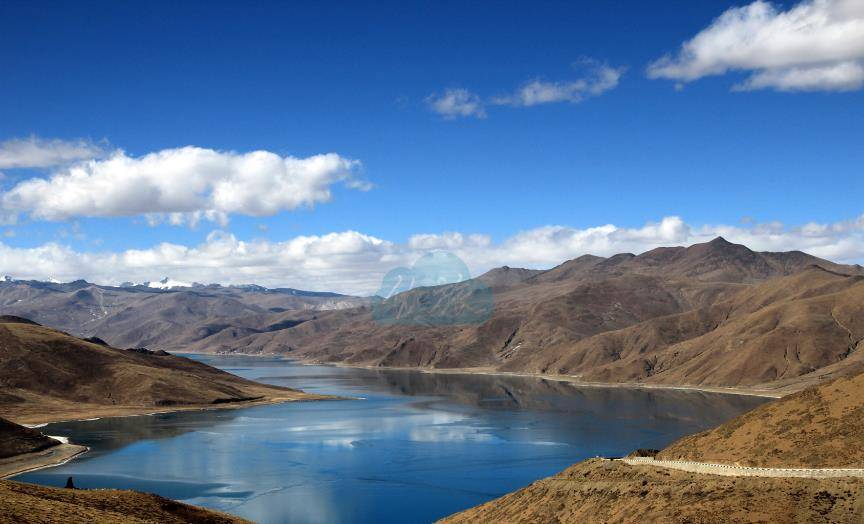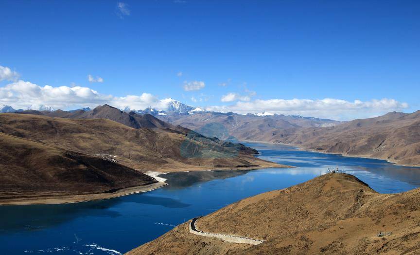 沿着拉萨河到达雅鲁藏布江之畔,接着不断盘山而上翻越5000米的垭口,直到看到羊湖的山水长卷在眼前展开,湛蓝的湖面映着远处的雪山,湖水因曲折的岸线、深浅的湖水和天光云影的变化,局部呈现出钴蓝、靛蓝、孔雀蓝等不同的蓝色。
