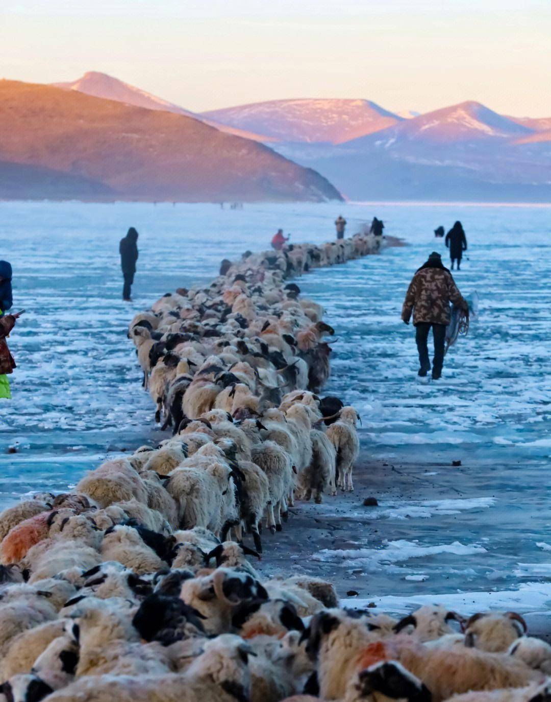 路过伸向湖心的推瓦寺,想象着每年村里的羊群排着队踏着冰面去湖心的小岛吃草的场面,不知不觉就上到了5340米的蒙达拉垭口。