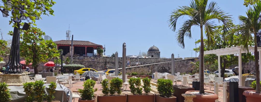 卡塔赫纳和西印度群岛类似,属于热带干湿季气候,年平均气温一直维持在25度以上,且波动不大,可谓真正意义上的四季如夏。我去的三月底还算不是最热的时候,但是从海拔两千六百多米,气温不到20度的哥伦比亚首都波哥大来到卡塔赫纳,一出机场便差点被三十五度以上的热浪掀翻在地。我拿出了最强防晒装备仍然觉得中午出门会被烤糊。