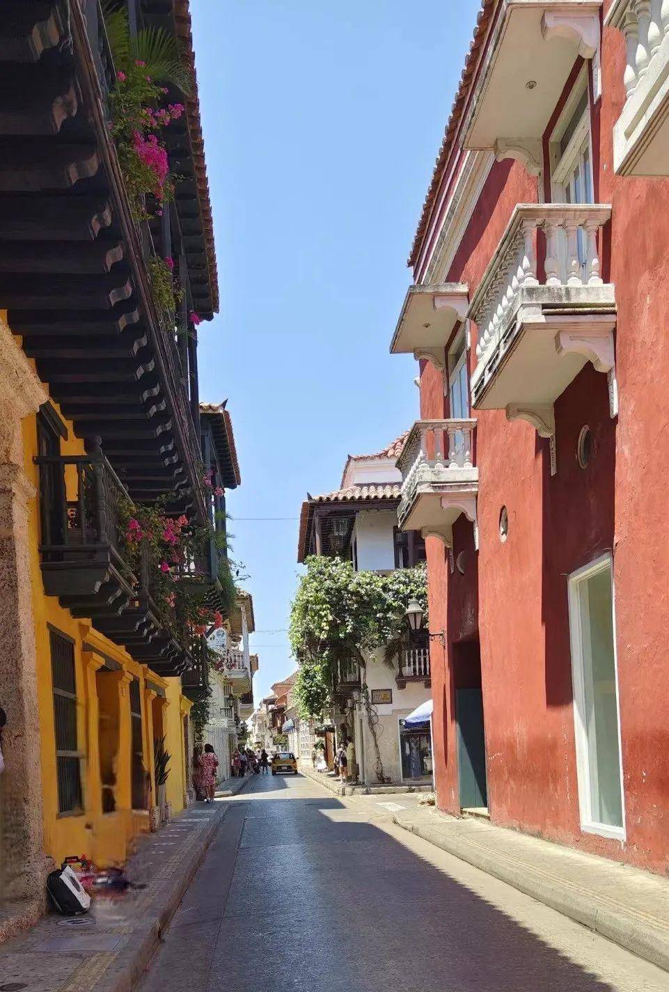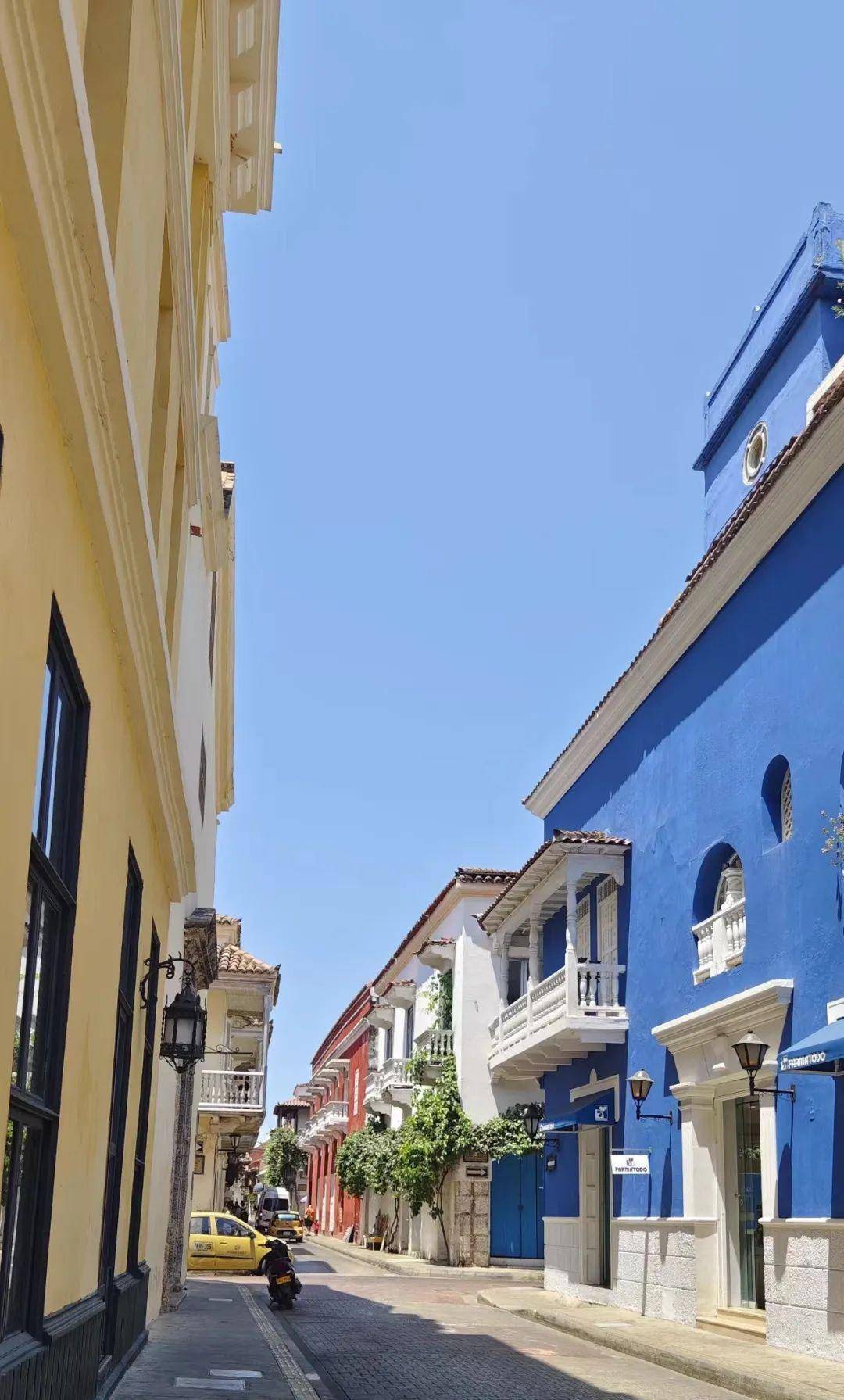 马尔克斯说的现实中的城市是卡塔赫纳老城区了,老城区被城墙环绕,老城街道两侧的建筑,都是极漂亮的饱和色,不光是建筑,住户的窗台上爬满的凌霄、三角梅,盛开出明黄或是黛紫的花朵。
