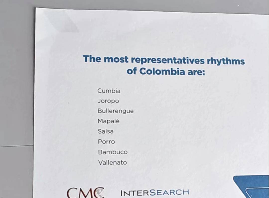 哥伦比亚还有在拉美闻名的各种音乐和舞蹈:VALLENATO、CUMBIA、MERENGUE、SALSA、CURRULAO、MUSICAL DE LLANERO、JOROPO等等,这其中多种舞蹈源至哥伦比亚。