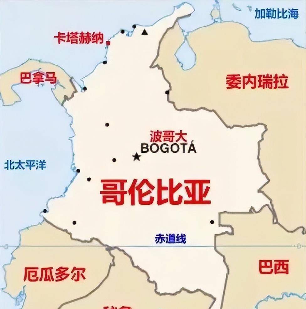 哥伦比亚地图:赤道穿过,两洋环抱,巴拿马是从哥伦比亚分出去的。