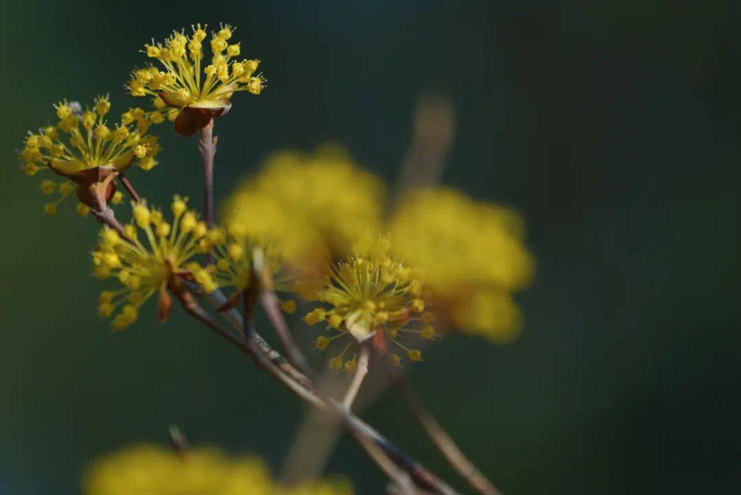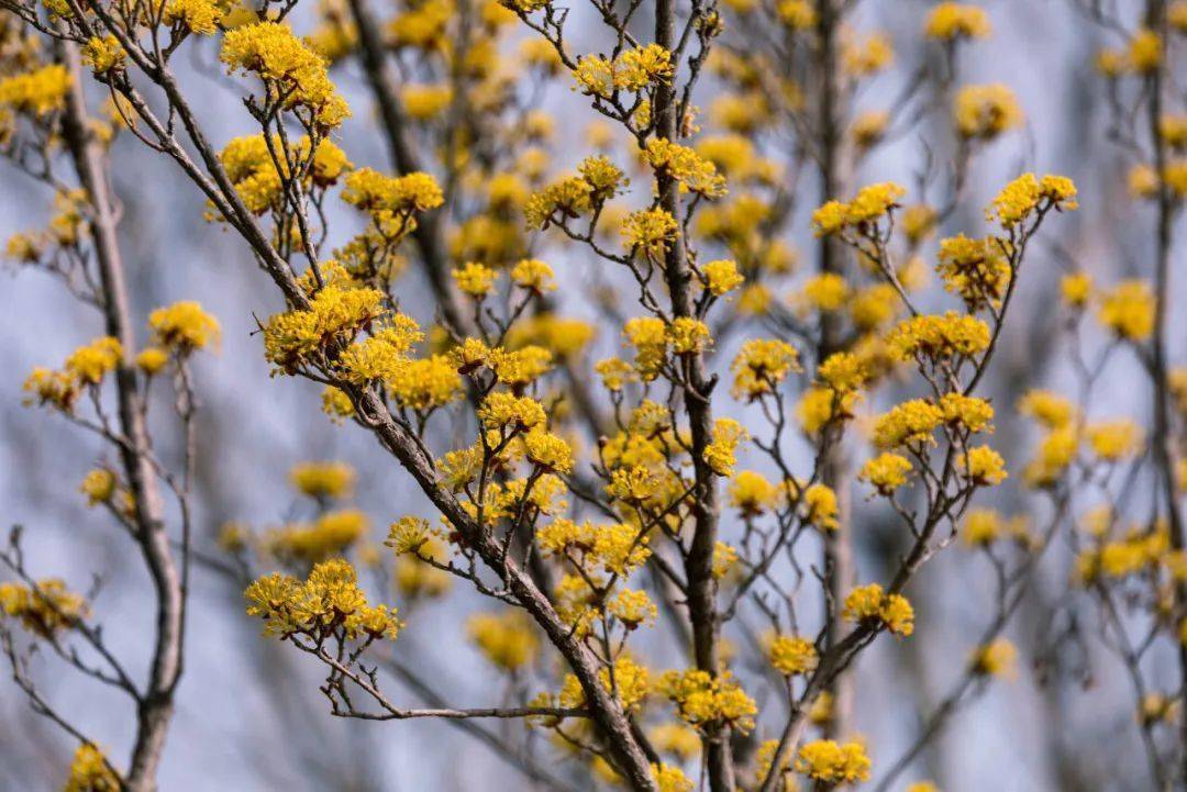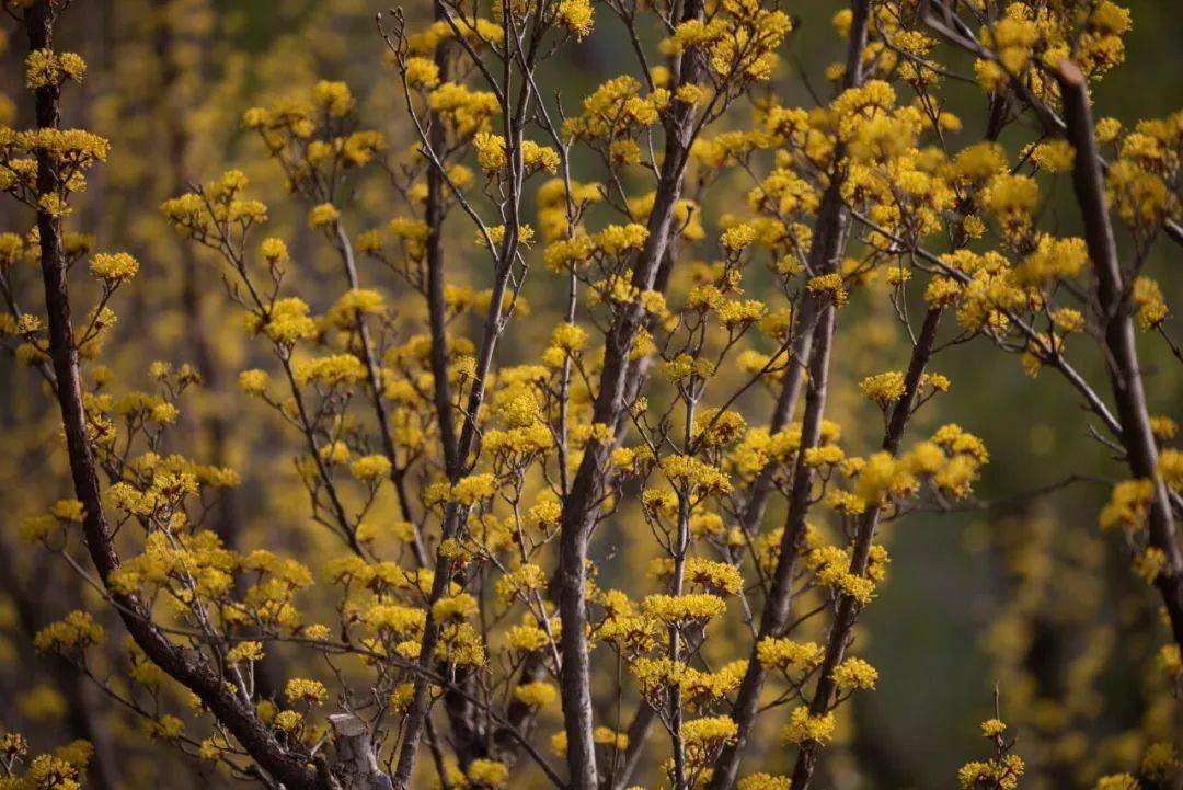 这些在枝头跃动的鲜活黄色精灵自有一种动人的美感,簇集若金霞,缥缈连绵,静美如梦。