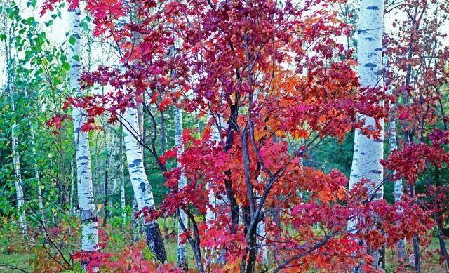 在秋季,长白山的树木变得五彩斑斓,构成了一幅美丽的画卷。红叶、金黄的枫叶和各种色彩斑斓的植物覆盖了整个山脉,给人一种宛如仙境的感觉。登上山顶,远眺群山连绵的秋景,让人陶醉其中。