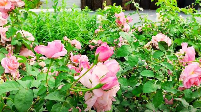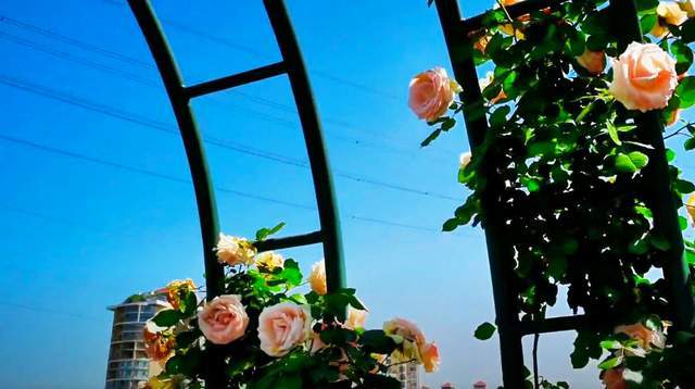 继续向里走,看到的月季花海,开始有了不一样的区分。比如有一段“棚户区”,当中做了架子,金属支架和护栏,组成低矮的篱笆庄,本来是纯粹的点缀雕塑,随着花卉的生长,慢慢融合一处。这时候,花卉绕着向上生长,也会突出藤蔓,还有带刺的花朵,也只有走近看才发现,原来这里并非只有花卉,还有其他的植物,它们混合生长在一起,显得更加饱满。
