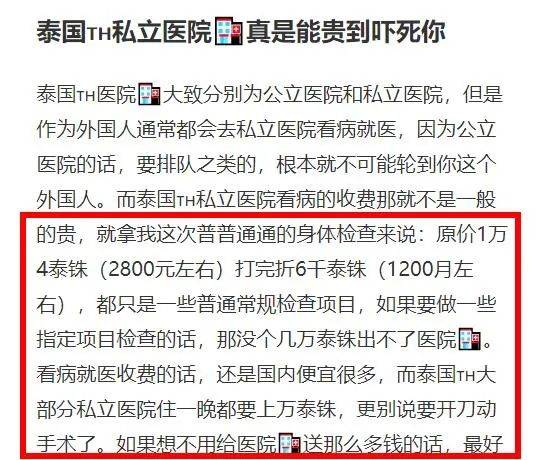一位居住在普吉岛的女士说,自己女儿在私立医院做了小肠疝气手术,只住了一晚医院,13万泰铢(约合人民币2.7万元)就没了。