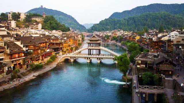 凤凰古城也是因古城西南方向一座酷似凤凰展翅的山峰而得名。这里依山傍水,夏季温度保持在22度左右,甚至有时候晚上都要盖薄被子。炎炎夏日,不管是在在沱江边闲逛戏水,还是在西门峡激情漂流,抑或去飞水谷探幽寻胜,都是一个非常不错的选择,暑假来这里旅游是最适宜不过的了。