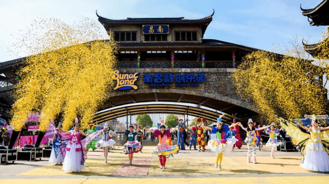 作为南昌市地标性文旅项目标杆,南昌融创乐园占地面积80余公顷,以赣鄱文化为主题,规划世外桃源、竹海秘境、云霄仙阁、鄱阳渔家、仙女奇缘、五彩瓷都六大主题区域。南昌融创乐园打破传统游乐园一票制的游玩模式,打造无门槛的周末休闲度假游乐内容及场景,为南昌及周边城市的居民增添了休闲娱乐的城市公共空间。