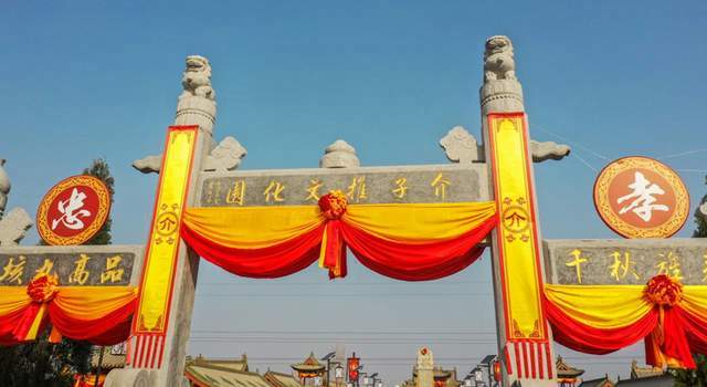 新兴建的介子推文化园内,享殿、献殿、介母祠、东西廊庑、牌楼、展厅等古香古色,美观大方,颇为壮观。