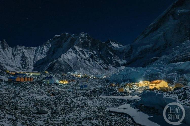 5月17日晚上7点,刚在帐篷里躺了5个小时后,王明龙和队友们就被叫起。由于今年攀登珠峰的人数较多,领队决定提前出发。