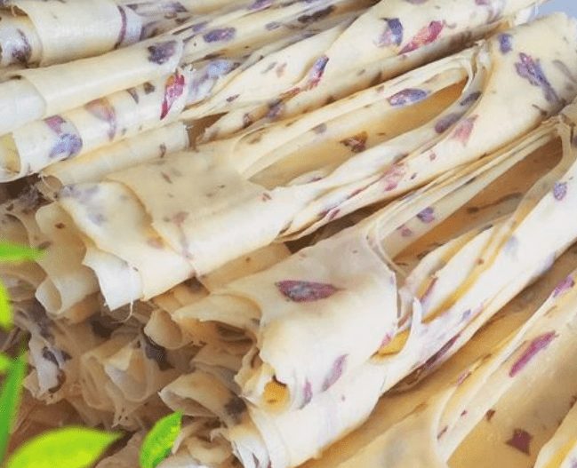 乳扇是云南的传统糕点,以其细腻的口感和香甜的味道而闻名。它是用牛奶、糯米粉和白糖等原料制作而成,形状像扇子一样,因此得名。乳扇的制作过程十分考究,需要经过多道工序,包括搅拌、蒸制、晾晒等。每一块乳扇都充满了牛奶的香甜味道,入口即化,给人一种愉悦的享受。