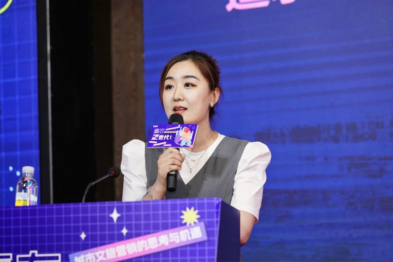 在探索山东文旅“出圈”之道这一部分,共有三位不同领域的文旅代表带来了主题分享,分别是哔哩哔哩营销中心营销企划负责人三藏、哔哩哔哩文旅行业直客销售经理宋成早、凤凰网青岛频道总监张欣欣。