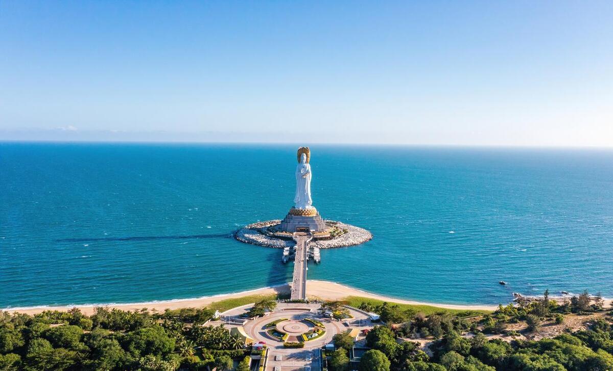南山文化旅游区山海风光,碧海蓝天,沙滩柔软,虔诚的佛教气息浓厚;来到海中观世音菩萨像前,便能深深感受到它的宏伟。一步步走向普济桥,心中忽然有一种安定和庄严的感觉。