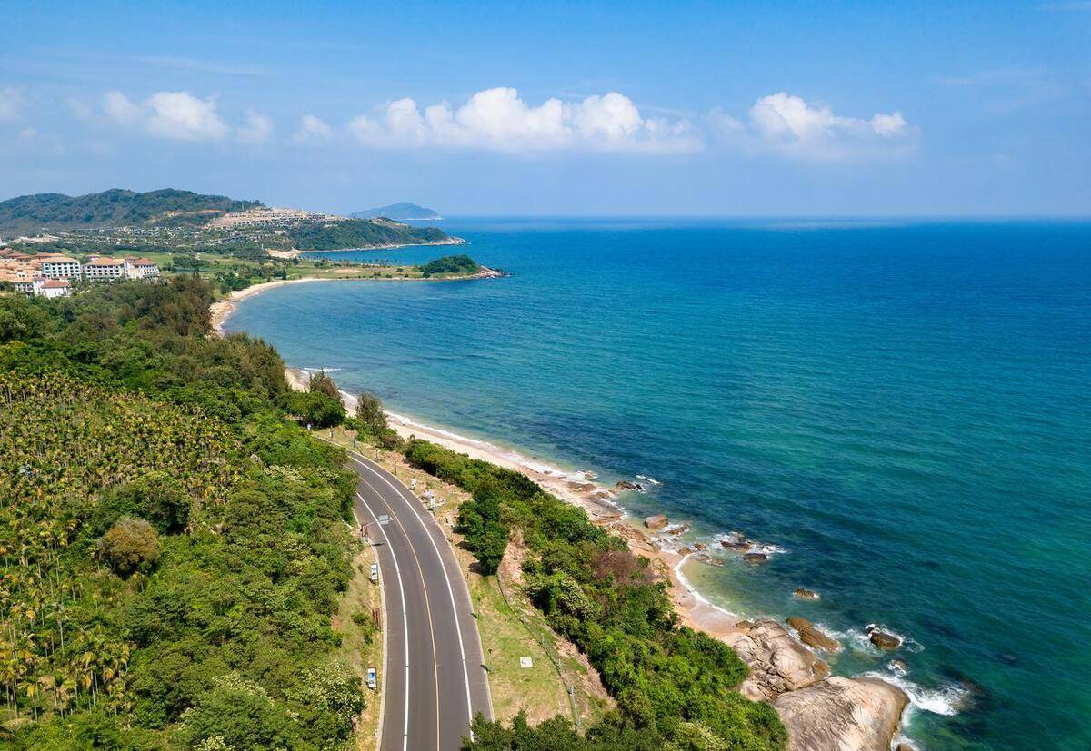 石梅湾位于海南岛东线。它由两个月牙形的海湾和美丽的山脉组成。在长滩的两端,两座山峰伸入海中。石梅湾的海岸,因为人烟稀少,特别干净。海水在阳光直射下呈翠绿色,翠绿色中泛着雪白的波浪。