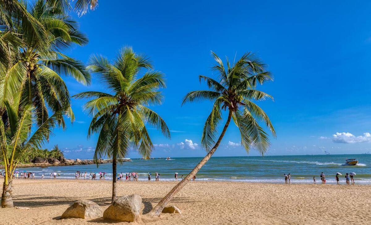 大东海是距离三亚市区最近的海湾,三面环山,拥有2.9公里长的海岸线,一侧是大海,一排排翠绿的椰林环绕着沙滩。大东海无暗礁,水清沙平,微风细浪,是理想的沙滩天然泳池。