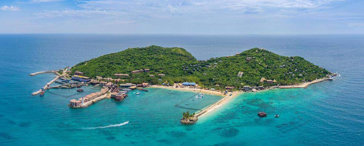 岛的三面覆盖着青山和郁郁葱葱的热带植物。临海山脉崎岖陡峭,直入海底。岛北部平坦平静,沙质洁白细腻。周边海水清澈时尚,是国内最好的潜水基地之一。热带鱼和珊瑚礁在水中清晰可见。