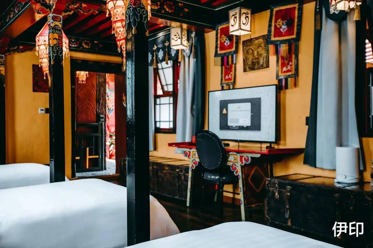 熟悉藏族文化的人应该都知道,光是这些饰品就价值不菲。店家愿意在房间里摆上这样的工艺品,可见老板真的很会花钱装修!