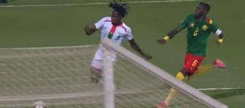 第85分钟,布基纳法索门将出击失误,阿布巴卡尔头槌顶进空门,喀麦隆追到2-3。