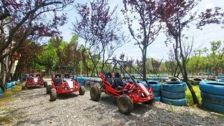 占地面积约200亩的月狮顽酷乡村,是以户外运动体验为核心,集度假、研学、团建等功能于一体的常态化休闲度假体验地。搭乘小火车穿越花海,越野车、皮划艇、攀爬、寻宝、淘金,林间的各种户外游乐设施让大人小孩都能玩得不亦乐乎。