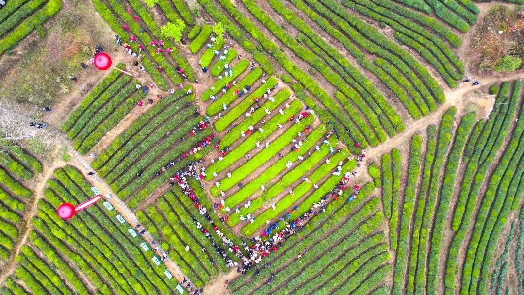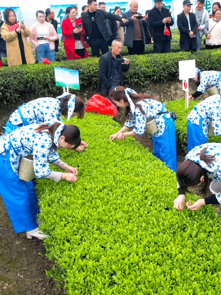 演出结束后,小河镇各村(社区)及部分企业代表全部组队,共19支参赛队伍的78名采茶能手身着统一服装投入比赛,指尖在茶树间熟练地飞舞,一片片鲜茶叶转眼间就落入篓中。