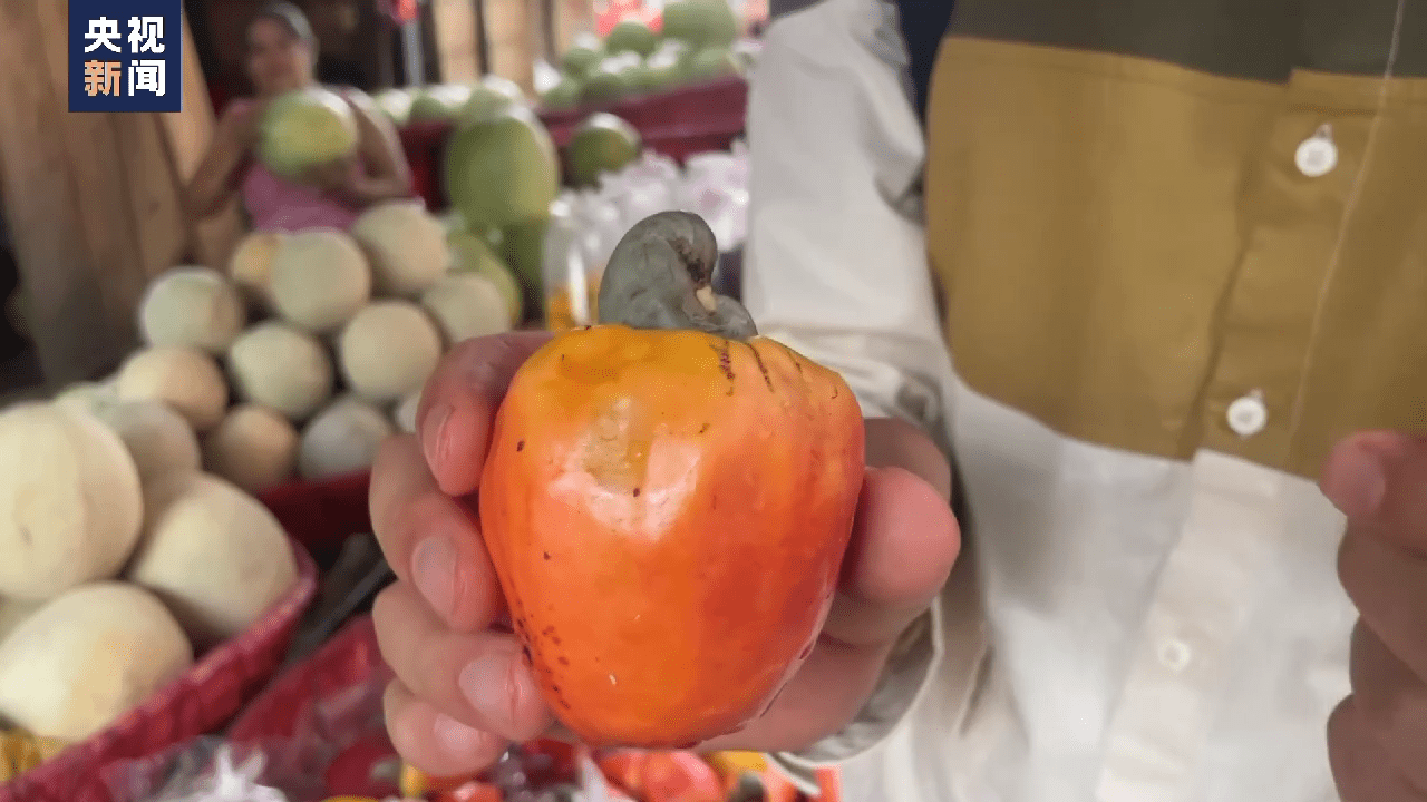 总台记者 肖贺佳:看这个形状,上面这一块眼熟不?老板告诉我,这打开以后就是我们常吃的腰果,当然得烤熟了才能吃。