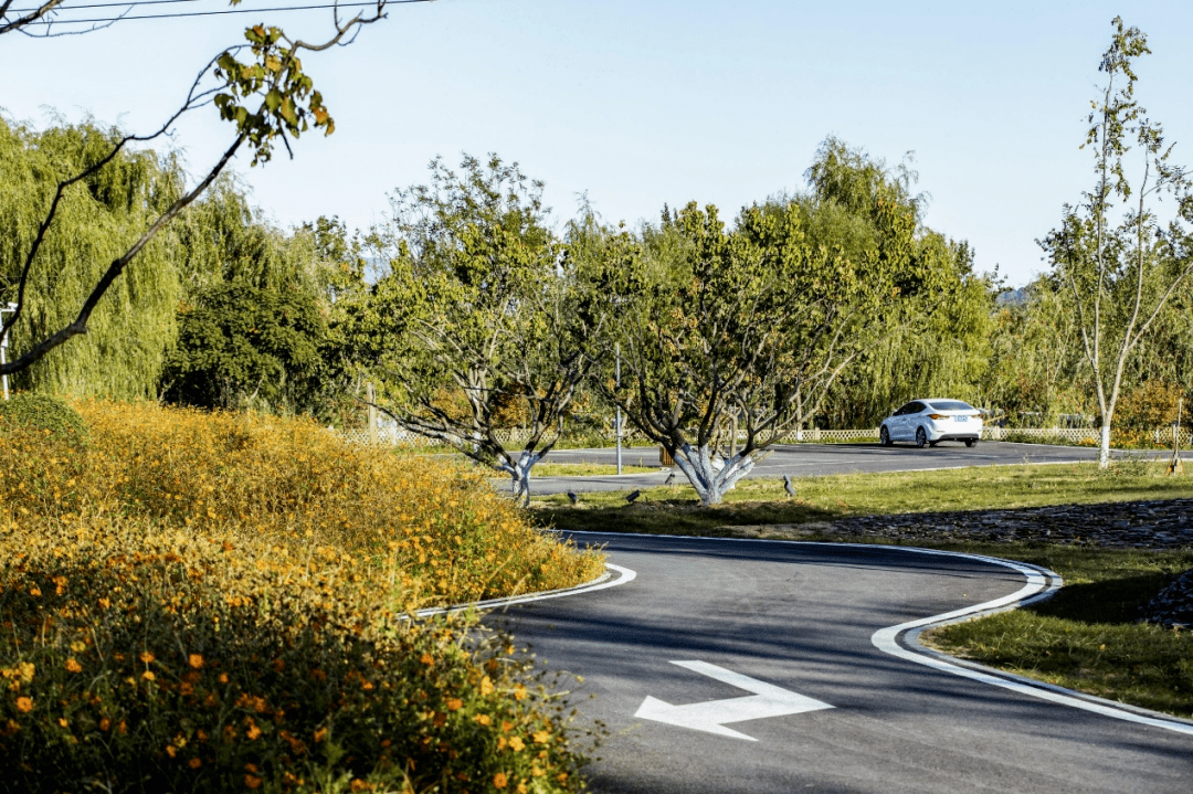 道路通过转折和路宽变化形成人车分流,将生态效应和停车功能结合,延续着生态质朴的景观氛围。播种而生的花海,没有繁琐的修饰和华丽的线条,用简单准确的设计语言打造动人的力量。