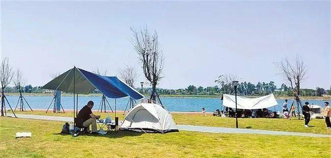 石林湖公园山边绿地吸引露营爱好者