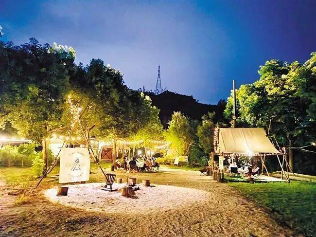 除了向公众开放的露营基地,市区还有不少经营性质的专业露营基地。这些露营基地设施比较齐全,会为游客准备好帐篷、天幕、餐桌椅及野炊用具等,有的还有露天电影,室外K歌、篝火晚会等设施,没有自带装备的游客可以“轻松上阵”体验露营之乐。